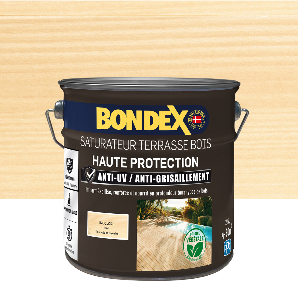 Avant toute utilisation sur l’ensemble de votre terrasse en bois, il est conseillé de tester le produit sur une chute pour s’assurer du rendu final. Quelques conditions relatives à la pose du saturateur doivent être respectées : il faut l’appliquer lorsque la température extérieure est comprise entre 12° et 25° et sans vent